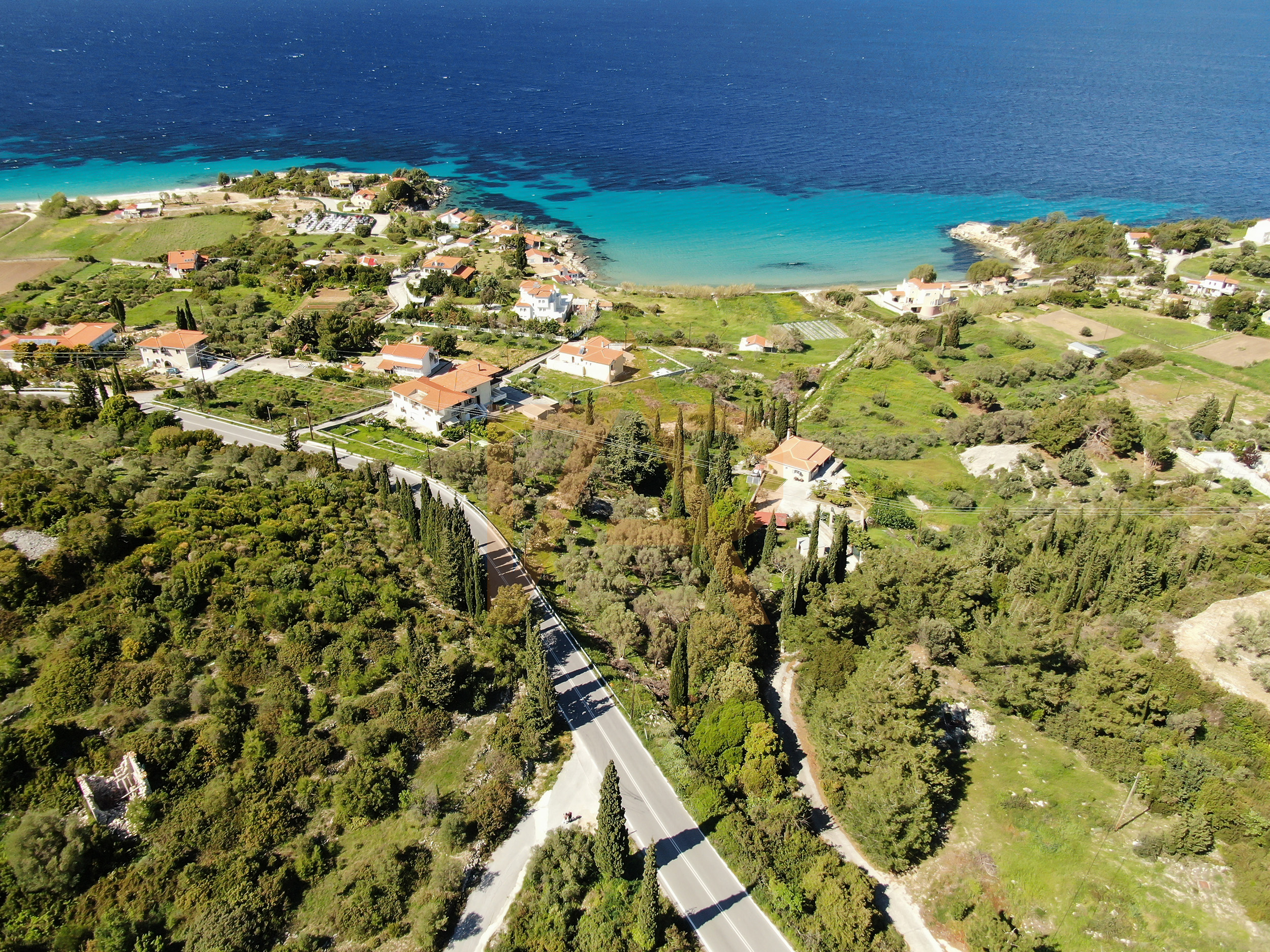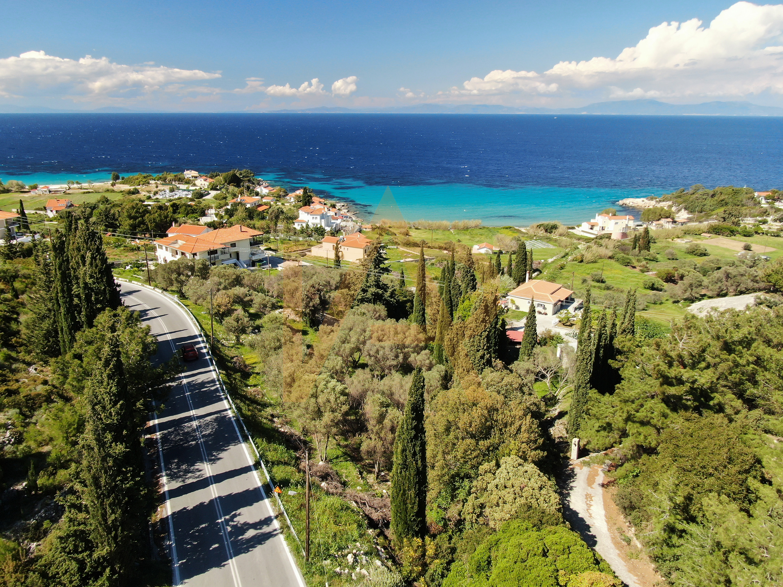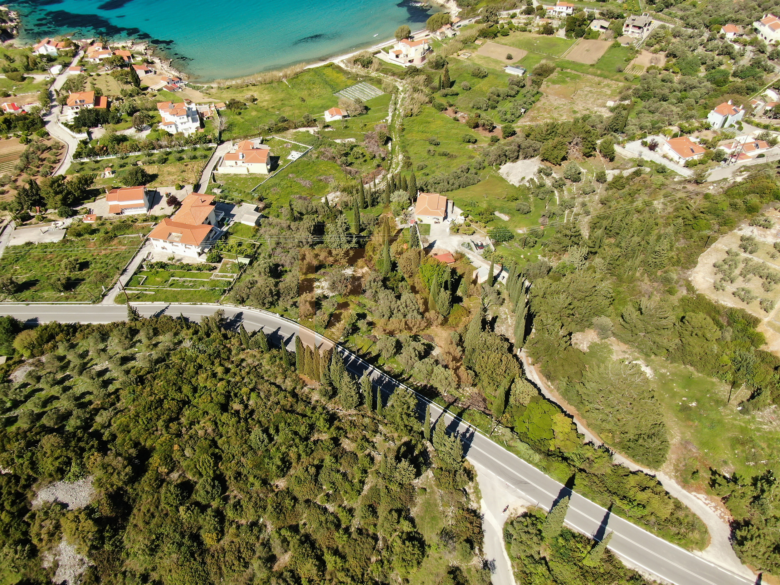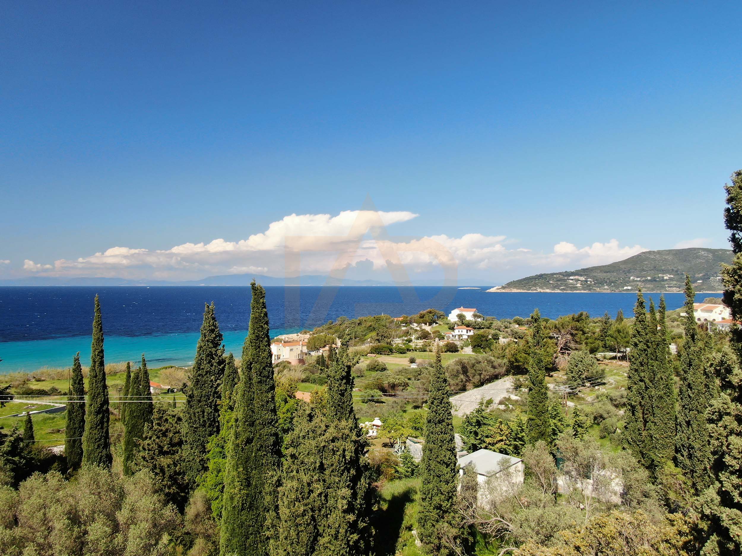 Plot for sale with a fantastic view of Kedros beach, Samos. It is sloping, and borders the Samos – Karlovasi national road.