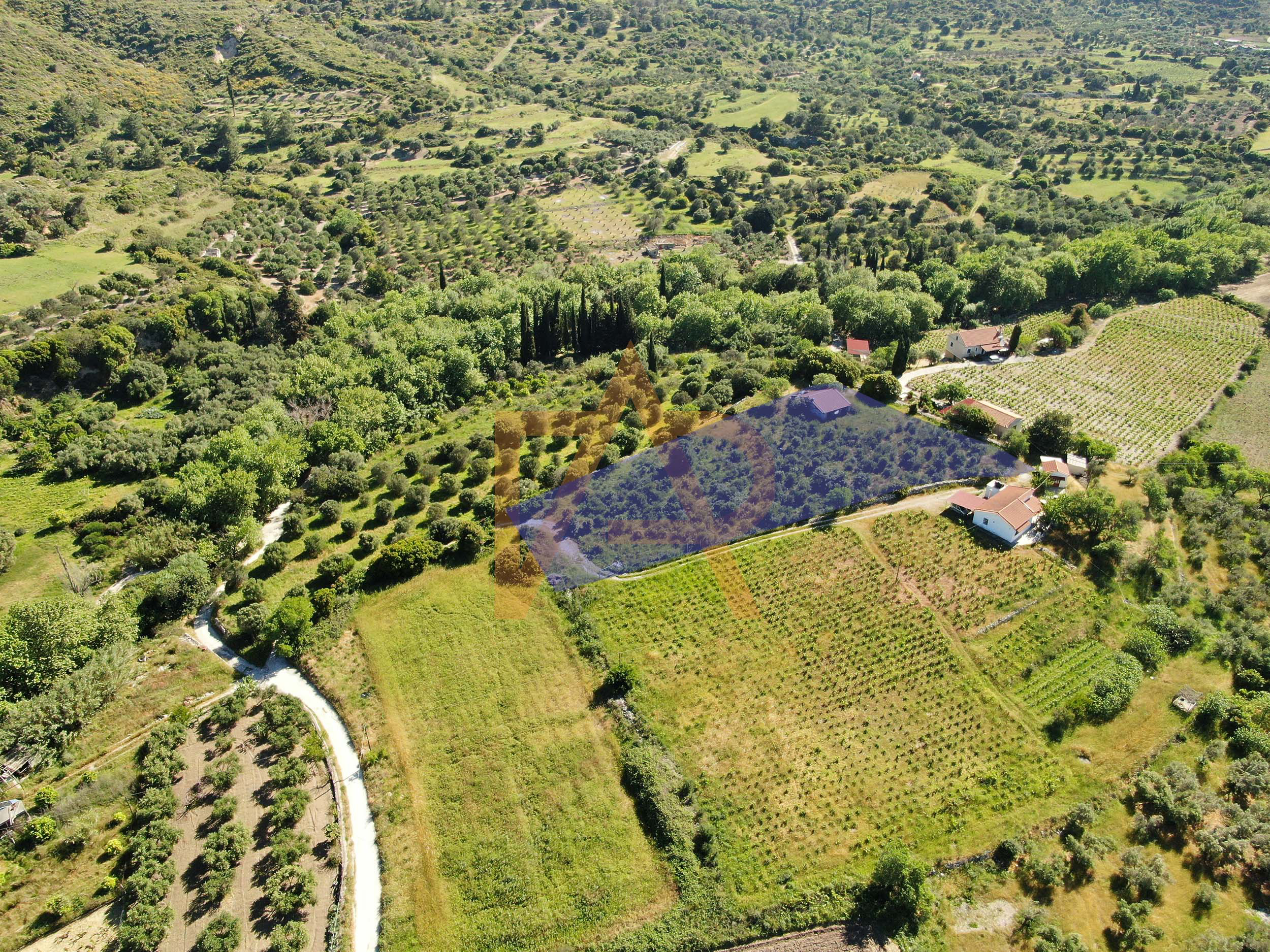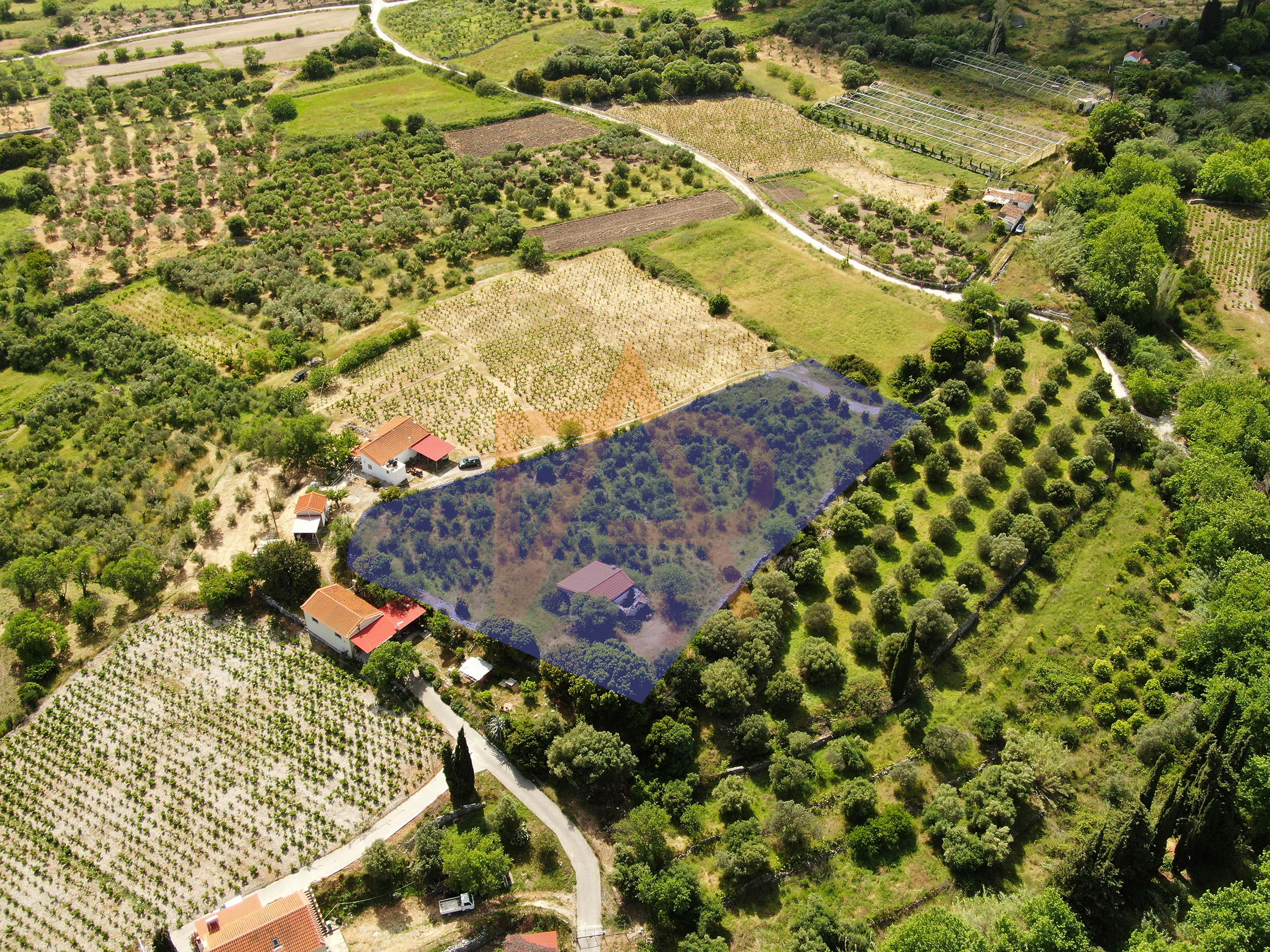 The plot with an area of 4001.83 sq.m. contains some olive trees and is bordered by a public road. Access is easy by car.