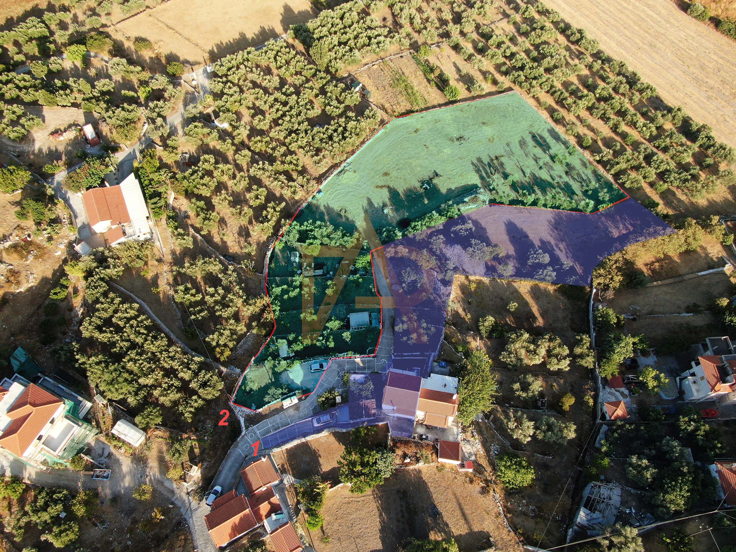 Plot 2 (vertical property) separated by a common road from plot 1, is 4246.47 sq.m. and contains a ground floor warehouse of 14.21 sq.m., active drilling and some olive trees. It has the right to build 115.6 sq.m. two-story house.
