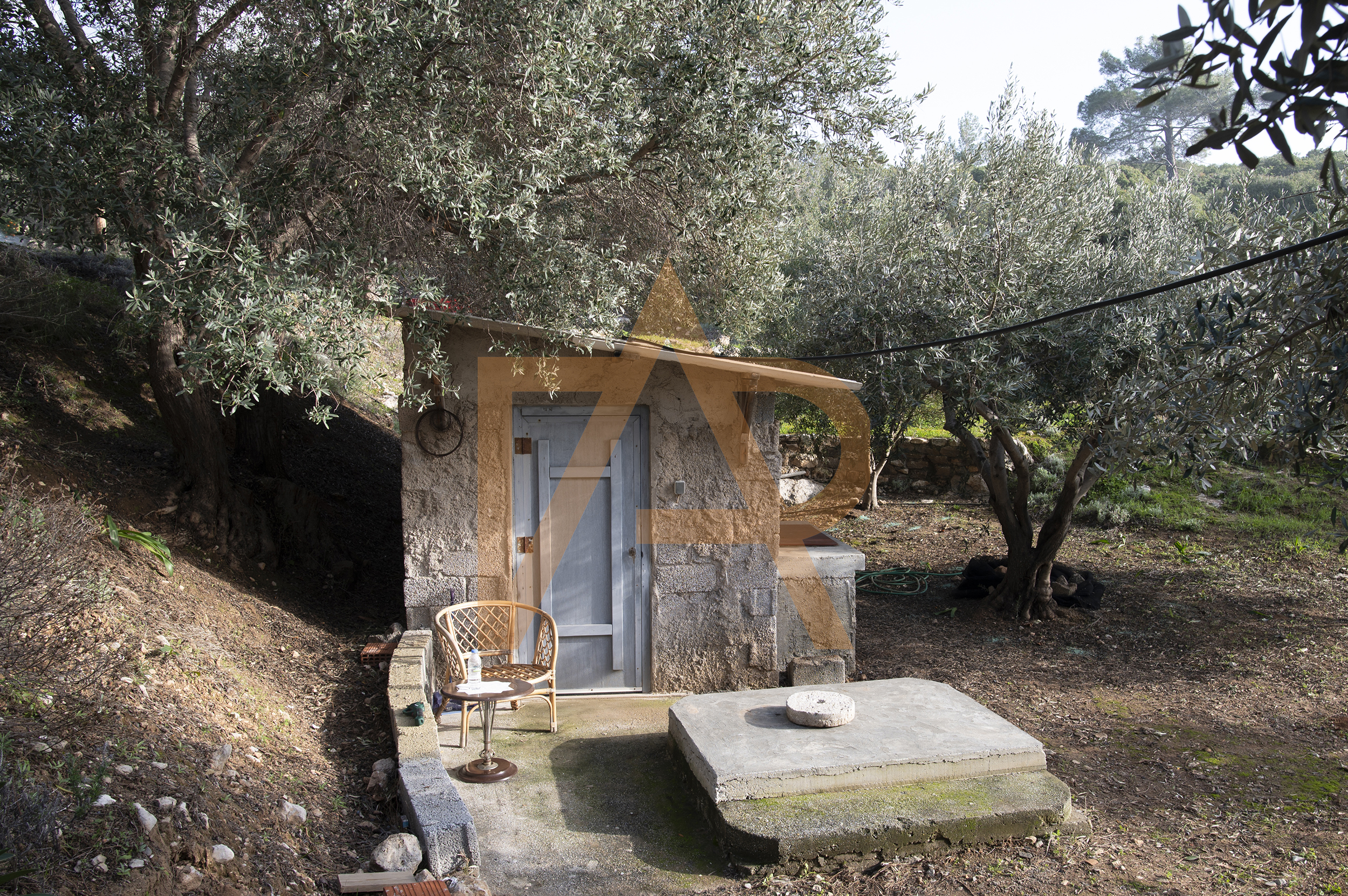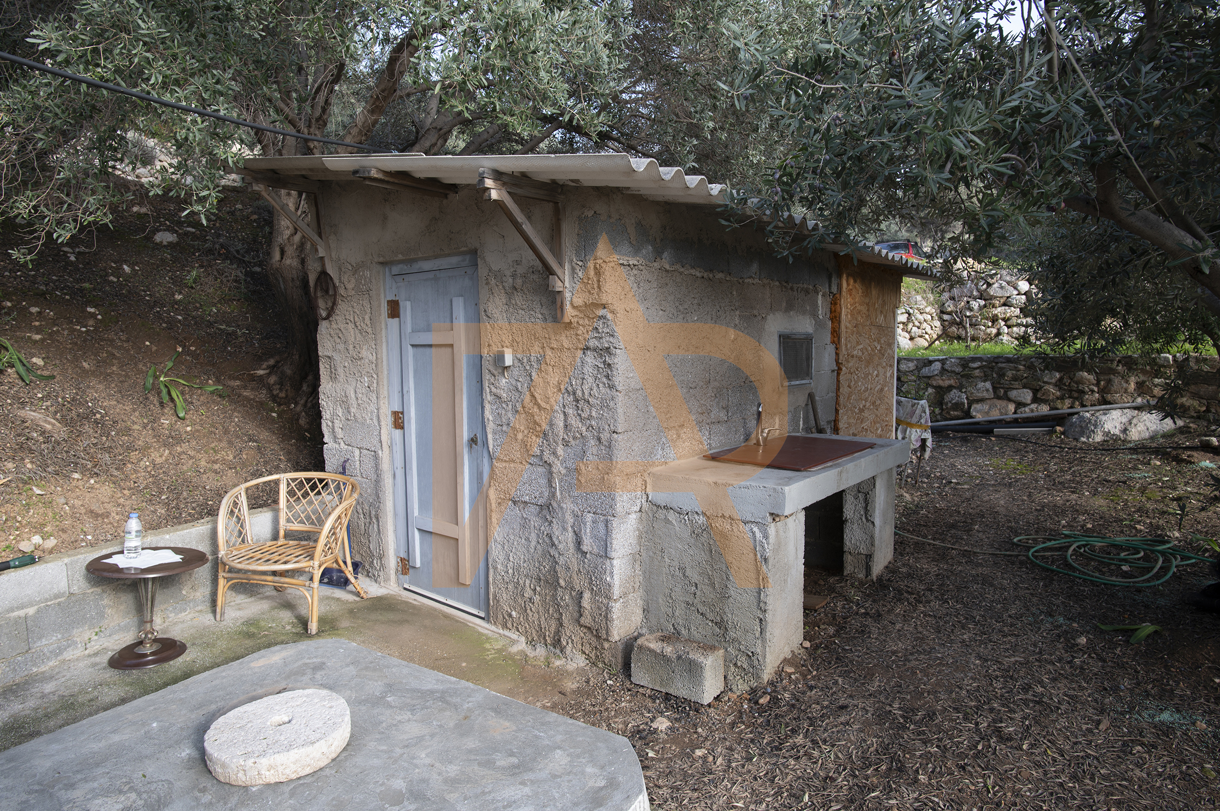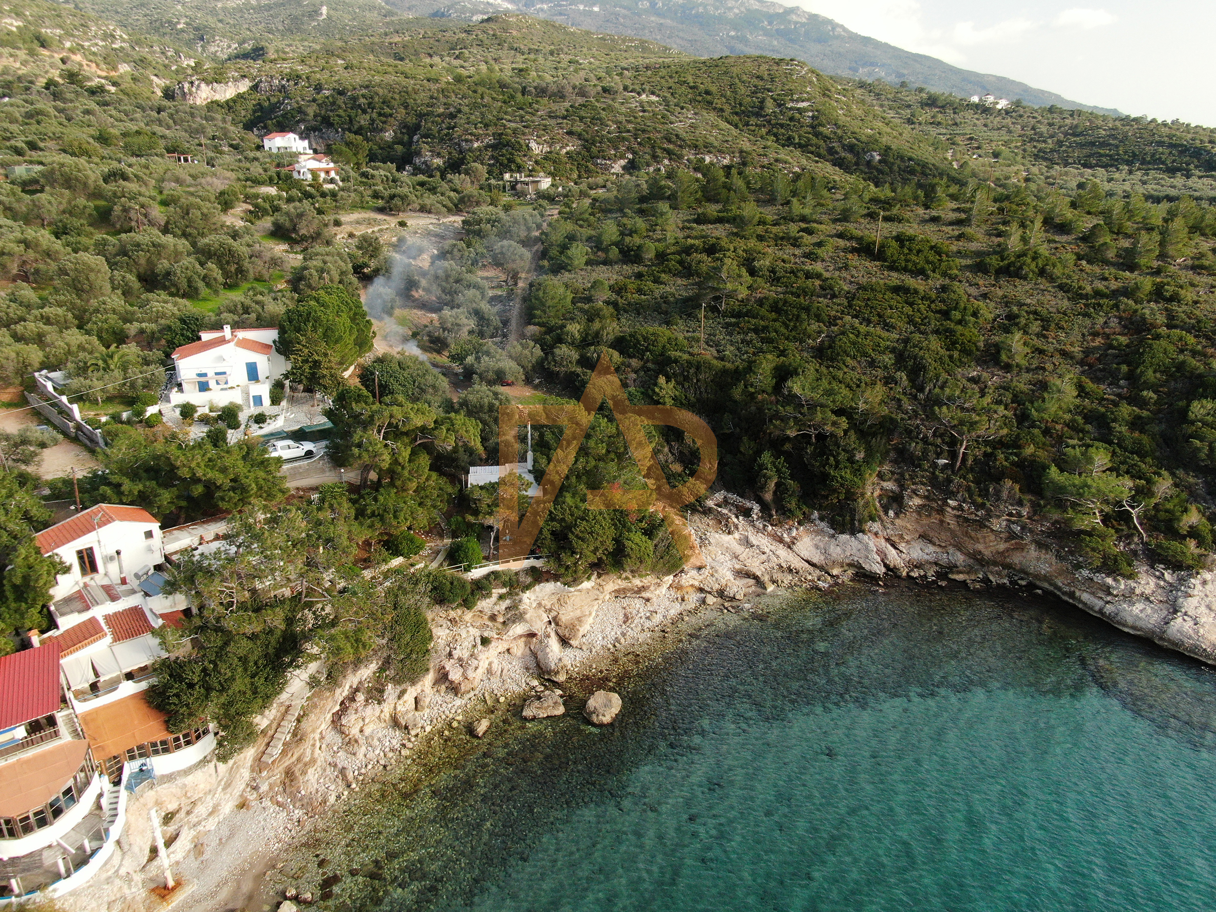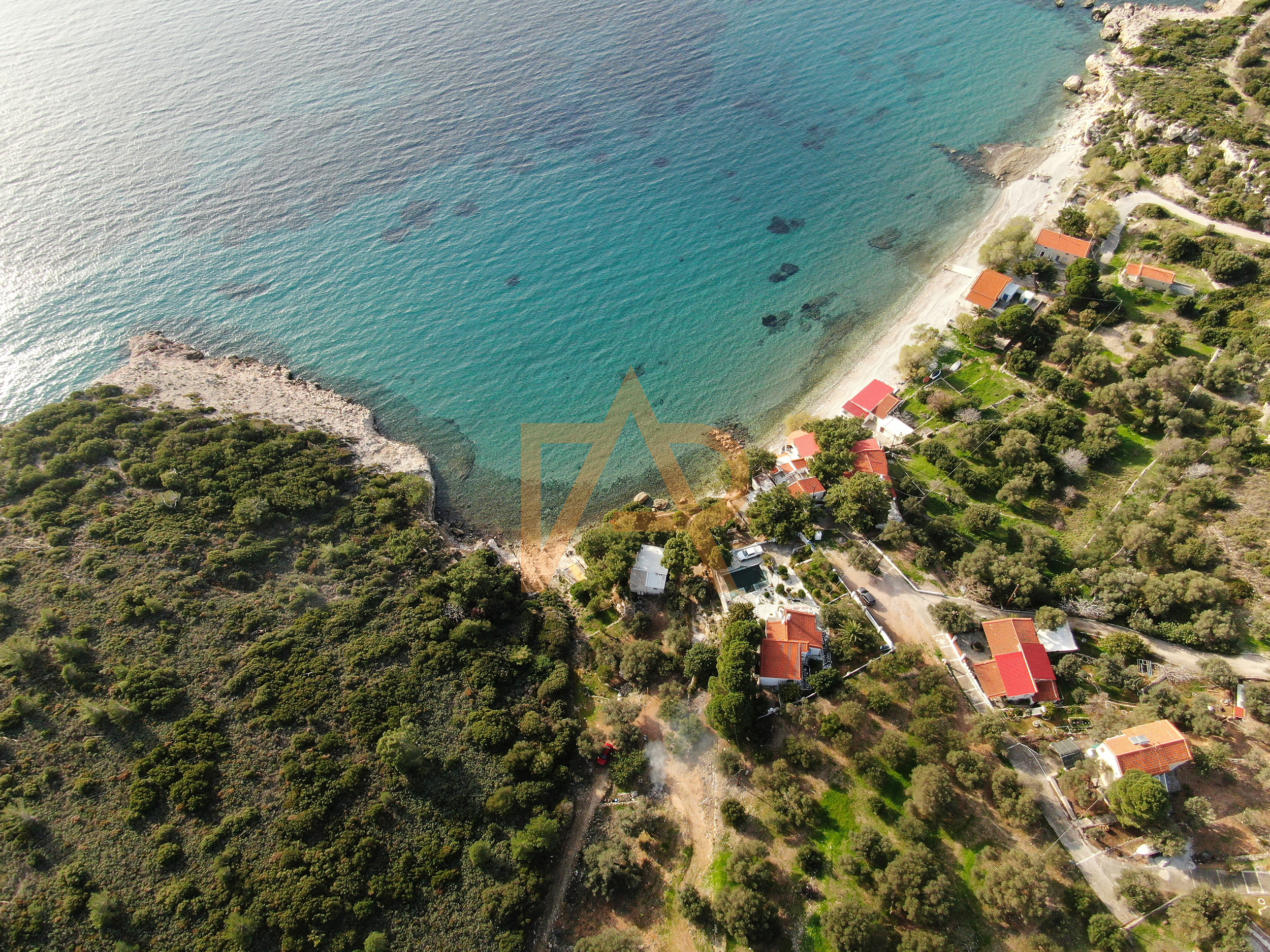 Το κτήμα είναι επικλινές, εξασφαλίζοντας ανεμπόδιστη θέα σε όλη την έκτασή του, και διαθέτει σκαλοπάτια που οδηγούν σε μια ιδιωτική παραλία με βότσαλα – έναν μικρό, προσωπικό παράδεισο για βουτιές, ψάρεμα ή απόλυτη χαλάρωση. Επιπλέον, ένας καλοδιατηρημένος ελαιώνας με παλαιά, καρποφόρα και παραγωγικά δέντρα προσθέτει γαστρονομική και αισθητική αξία στο ακίνητο.